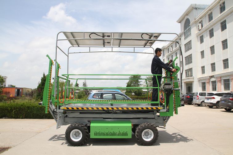 4GP-1200EP electric drive picking operation platform is a full-size picking operation platform developed by Zoomye Company for medium and large-scale park users. The operating surface is 3m x 3m, which can accommodate 6-8 operators+2 500 kg standard fruit baskets at the same time. This platform is the high configuration and high power version of Zoomye 1200 series platform. In addition to the high cost performance, high structural strength, high reliability, high durability, high load, high efficiency, high compatibility In addition to the features of easy maintenance, Zoomye Company has equipped it with a large capacity lithium battery pack with BMS management system (battery capacity 200Ah), and equipped it with an AC motor and AC control system using CAN bus communication control, so that the performance of the motor and battery pack has been very well adjusted. In order to improve the driving performance on the ramp, it has also added a steep descent function for the model, It still has excellent controllability when working with full load on 20% ramp, so the operator can take it easy!