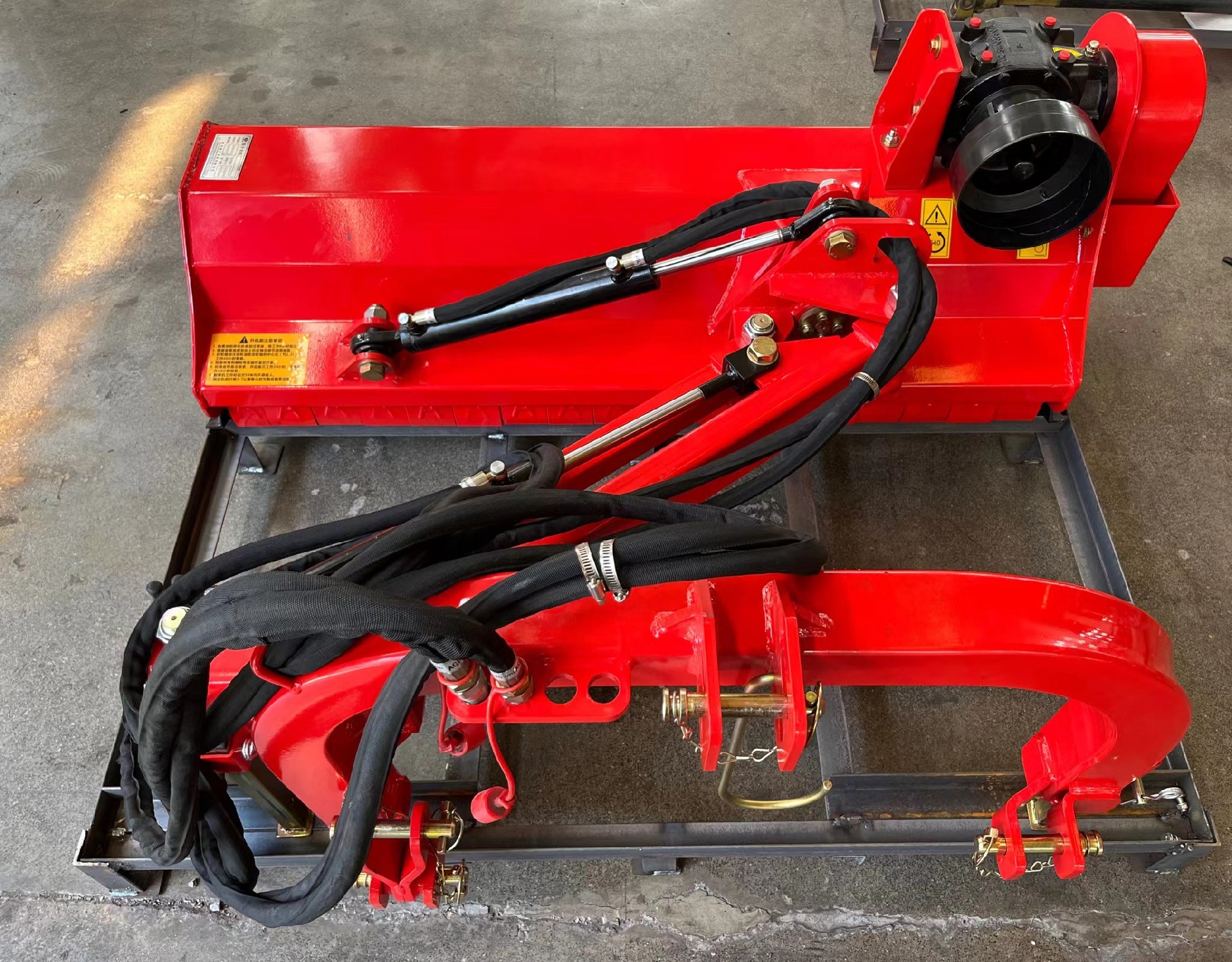 該系列割草機(jī)帶有液壓側(cè)移和翻轉(zhuǎn)功能,通過(guò)調(diào)整液壓閥操作手柄能極為方便地調(diào)整割草機(jī)姿態(tài),方便左右側(cè)向移動(dòng)割臺(tái),方便調(diào)整割草機(jī)割臺(tái)傾斜角度。該機(jī)需掛載于拖拉機(jī)前或者后側(cè),與拖拉機(jī)配合使用,拖拉機(jī)需配備至少1組液壓輸出。割草最大直徑≤20mm。